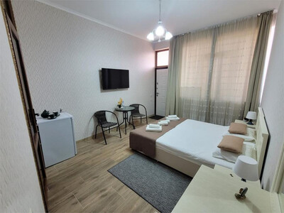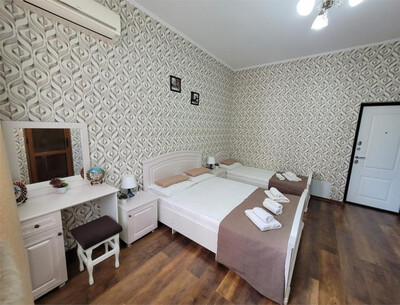 Размещение в 2-, 3-местных номерах стандарт с удобствами, ТВ, холодильником, сплит-системой, Wi-Fi. При необходимости можно установить дополнительное место – кресло-кровать. Питание. В гостинице есть кафе-столовая, где можно заказать комплексное питание. Размещение детей. При размещении ребенка до 5 лет без места (на одном спальном месте с родителями) оплата 200 руб./сутки. Наш комментарий. Небольшой камерный отель с приятными номерами.