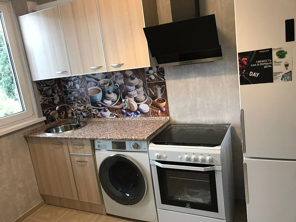 Инфраструктура, сервис: на 2 номера - оборудована кухонная зона, где располагается: кухонный гарнитур, газовая плита, раковина, большой холодильник, стиральная машина, гладильная доска + утюг.
