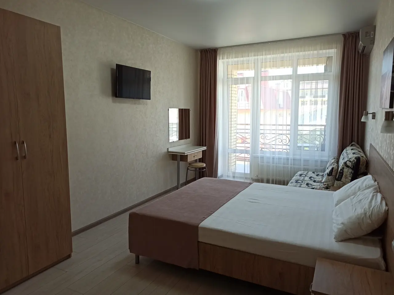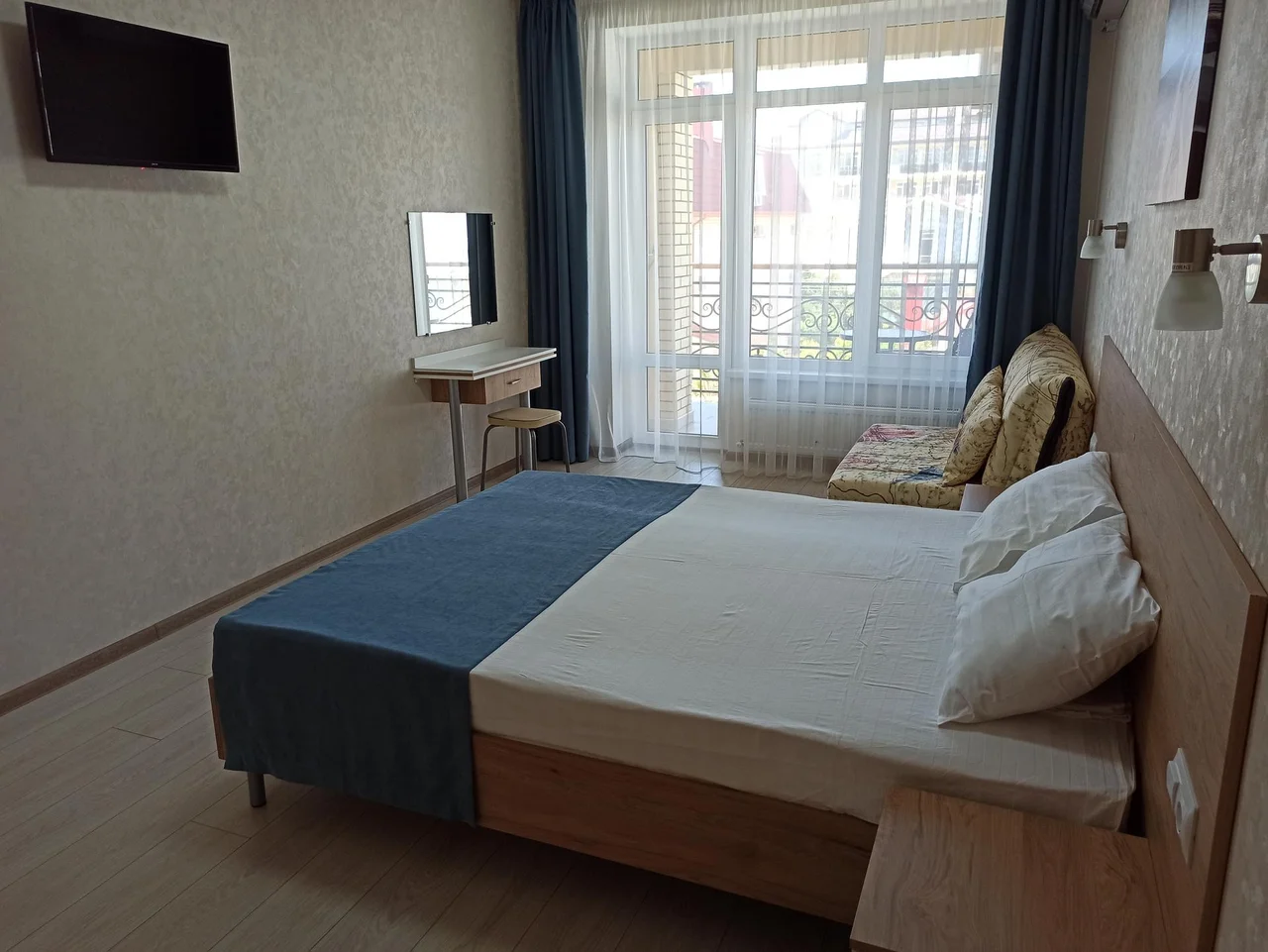 В номере: двуспальная кровать или две раздельные кровати, туалетный столик, зеркало, шкаф для одежды, телевизор, холодильник, кондиционер, санузел+душ, гигиенические средства, Wi-Fi, набор посуды.