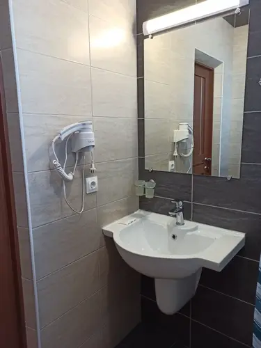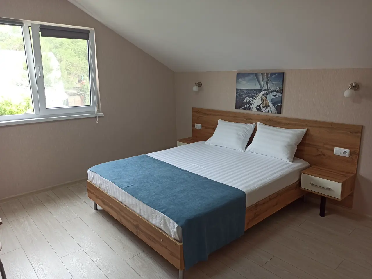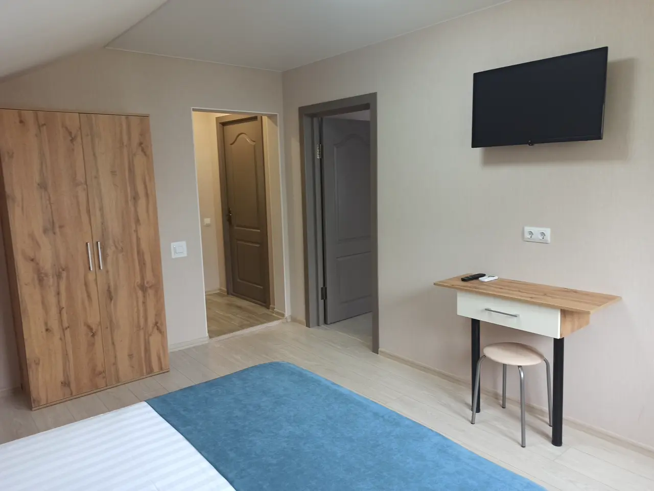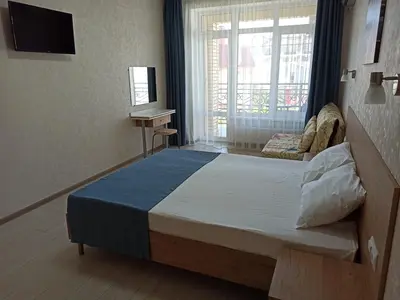 В номере: двуспальная кровать+односпальная кровать или три раздельные кровати, зеркало, шкаф для одежды, телевизор, холодильник, кондиционер, санузел+душ, гигиенические средства, Wi-Fi, набор посуды.