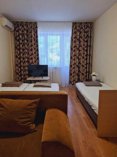 Инфраструктура. В гостинице есть кухня для самостоятельного приготовления пищи, детский уголок, зона отдыха с большим телевизором, бесплатный Wi-Fi.