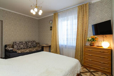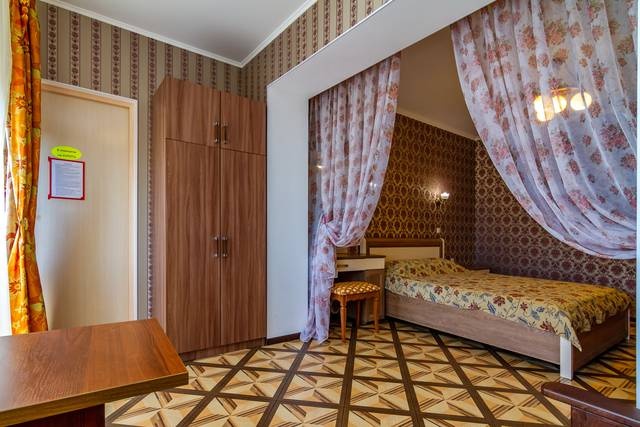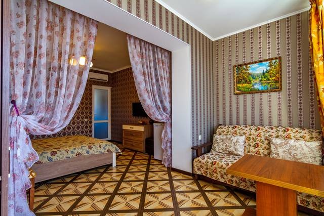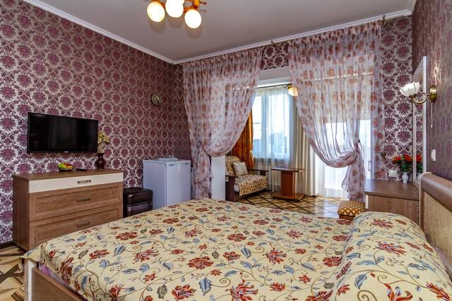 2,3-х местные номера с удобствами Стандарт: двуспальная кровать, раскладной диван, TV с подключением к проводному интернету + Wi-Fi, холодильник, сплит-система, шкаф, журнальный столик, санузел и душ.