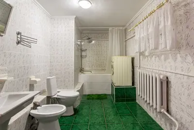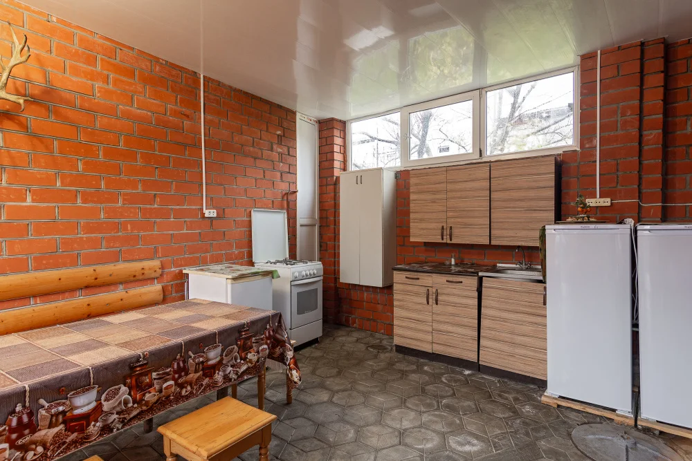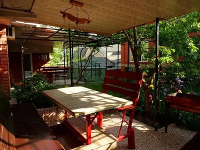 Инфраструктура: беседка для отдыха, просторный ухоженный зеленый двор, кухня для самостоятельного приготовления пищи, Wi-Fi интернет. Бесперебойная подача горячей и холодной воды круглые сутки, бесплатная парковка на 5 автомобилей, скважина-все это преимущества. Стиральная машина.