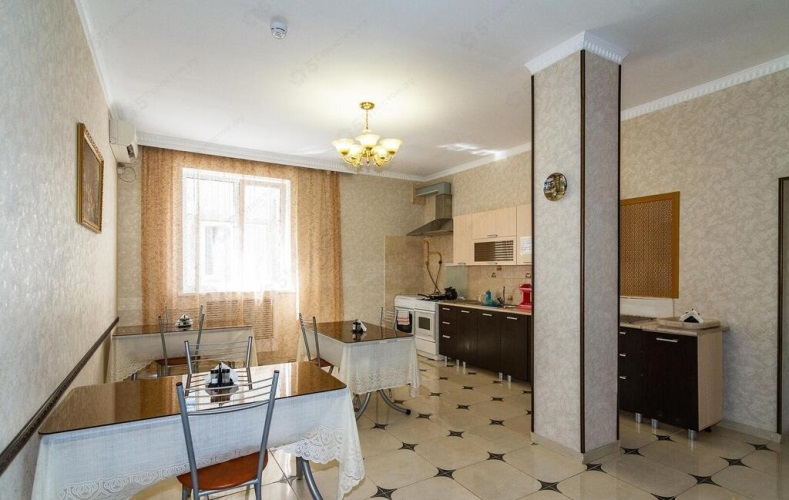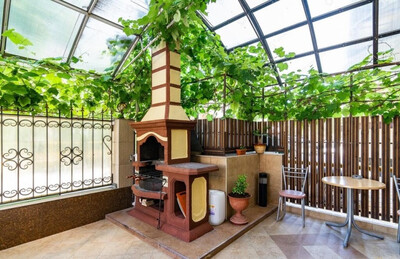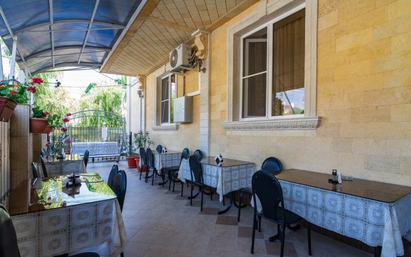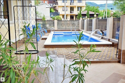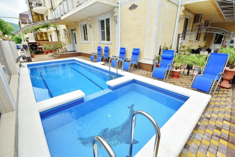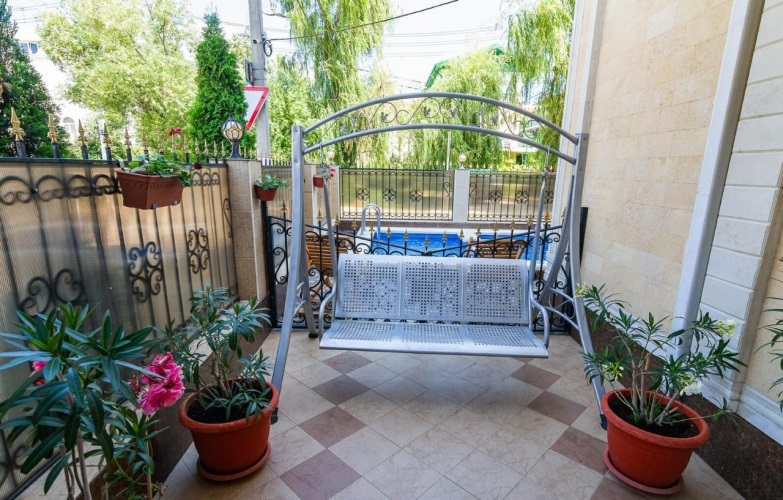 Инфраструктура: Wi-Fi, бассейн с подогревом, утюг и гладильная доска на каждом этаже, кухня для самостоятельного приготовления пищи, благоустроенный двор. Во дворе: качели, фонтан, летние столы, стулья, мангал.