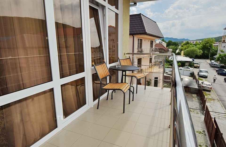 Номера, расположенные на 1 этаже, без балкона. Номера, расположенные на 2-3-4 этаже с балконом (столик, стулья, сушилка для белья).