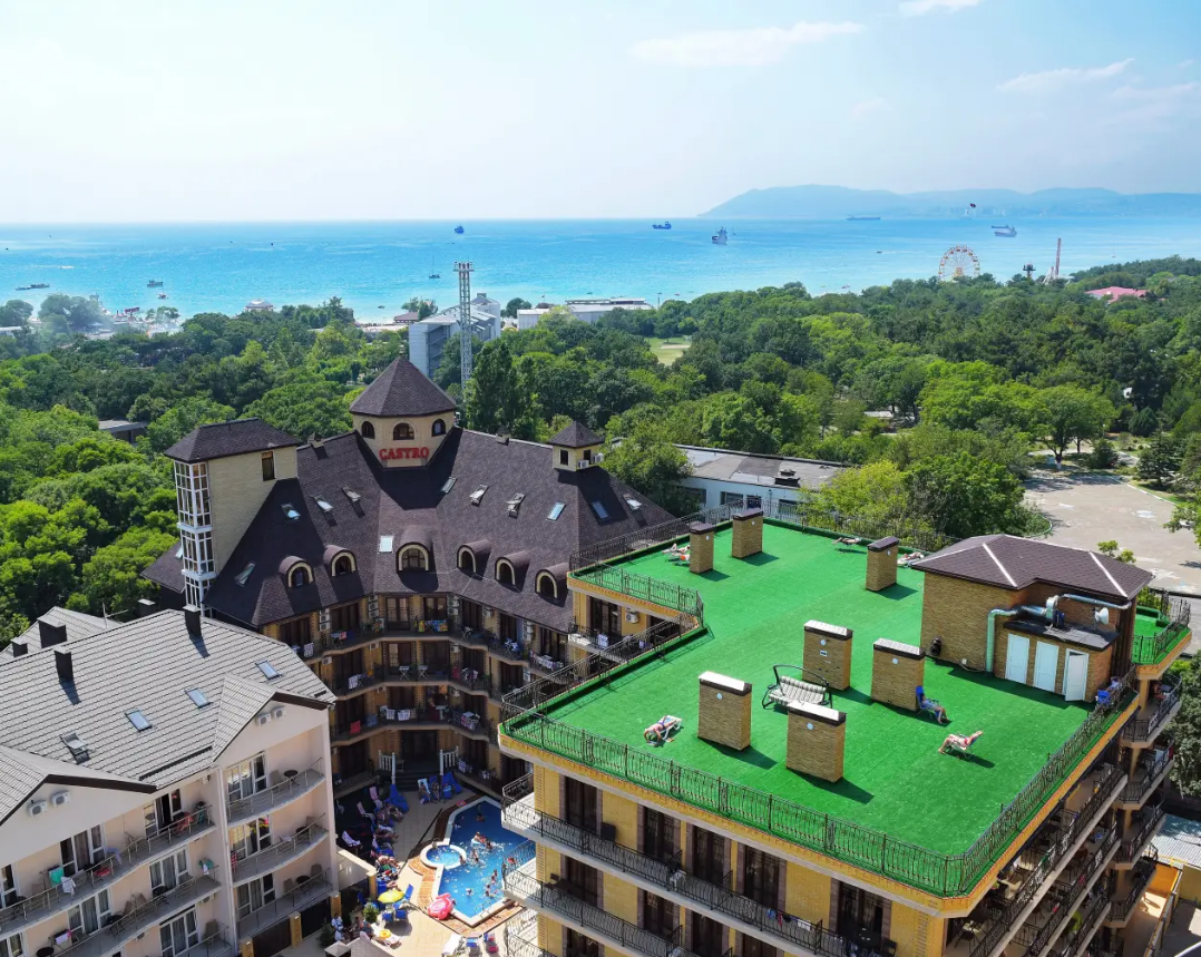 К услугам отдыхающих: закрытый двор, бесплатный Wi-Fi на территории, крытый бассейн с подогревом (7,5х5,5 метров, глубина 1,5 метра) и бассейн под открытым небом (8,5х8,5 метров, глубина 1,6 метра) , детская площадка и аниматоры, терраса на крыше с видом на море, тренажеры под открытым небом, утюг и гладильная доска на этаже, стирка за доп. плату, парковка. В отеле можно курить только в специально отведенных местах на улице. В номере и на балконе курить запрещено!
