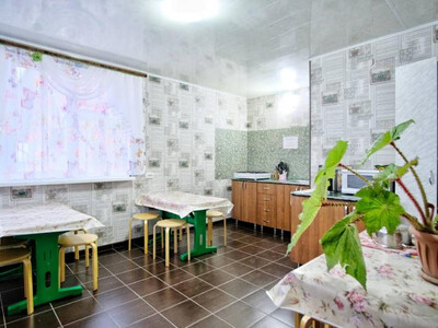 На первом этаже есть просторная кухня со всем необходимым (холодильник, газовая плита, посуда) для самостоятельного приготовления пищи. На каждом этаже дополнительно установлены холодильники. Во дворе беседка, пруд. Рядом недорогая столовая.