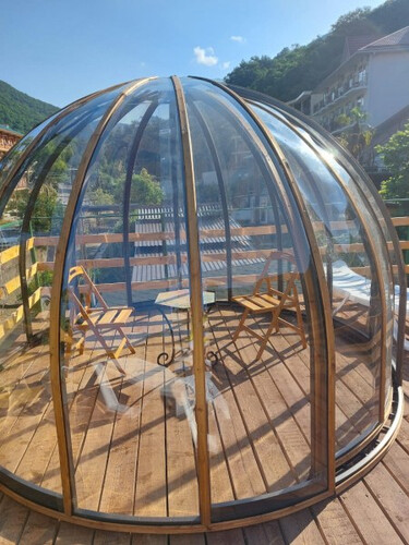 Инфраструктура: Территория гостевого дома "Море и горы" обильно озеленена, благоустроена и огорожена. Для гостей имеется: бар, детская игровая площадка, бильярд, 2 БАССЕЙНА (каркасные), баня на дровах (платно), мангальная зона; предусмотрен беспроводной интернет, автостоянка. Можно воспользоваться услугами массажиста (платно). Вкусно поесть гости смогут в столовой на территории гостевого дома.
