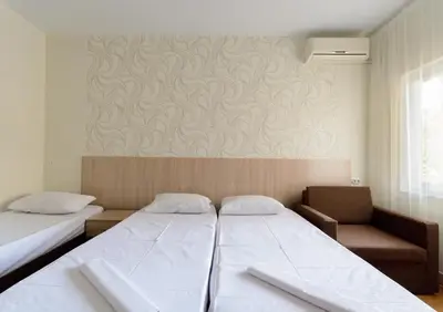 Инфраструктура: 3-х этажное здание, столовая, в которой возможно заказать питание по меню, гладильная доска, утюг, Wi-Fi, стирка белья (платно).