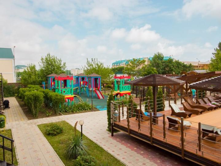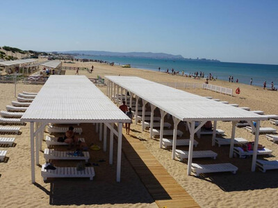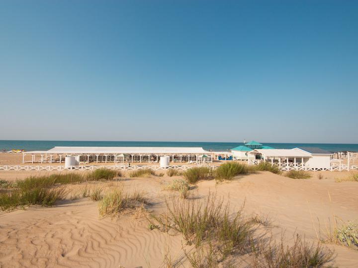 Пляж собственный, расположен в 20 минутах ходьбы от комплекса, оборудован шезлонгами, теневыми навесами, детской площадкой, волейбольной площадкой, душевыми, туалетом и летним кафе. Имеется бесплатный трансфер до пляжа. Зона отдыха оборудована бесплатным Wi-Fi.