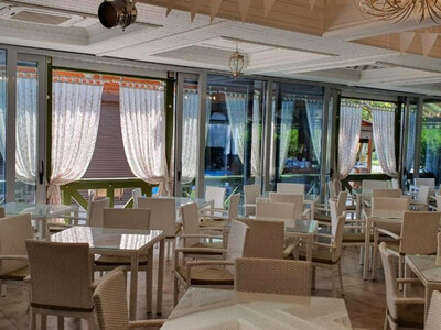 Инфраструктура. На территории базы отдыха: два открытых бассейна c подогревом (взрослый и детский), спортивная площадка для игры в волейбол, мини-футбол, танцевальная площадка, баня, шашлычный дворик. Есть игровая зона с бильярдными столами, настольным теннисом. Для детей: две детские площадки, детский клуб, анимация. Есть платная круглосуточная охраняемая автостоянка, в административном здании имеется сейф, депозитарий, прокат детских колясок и велосипедов.