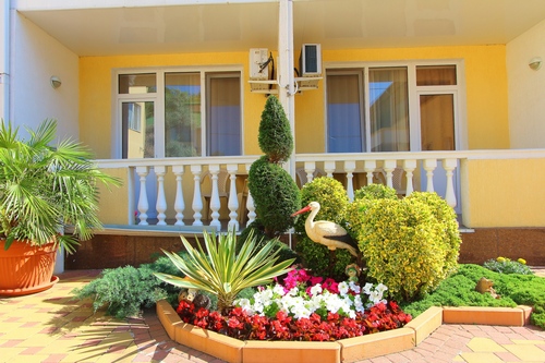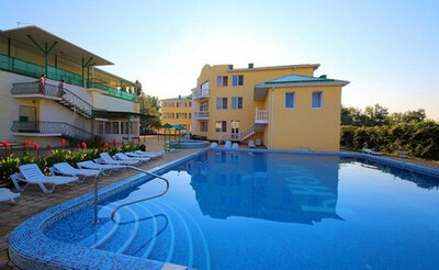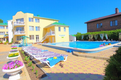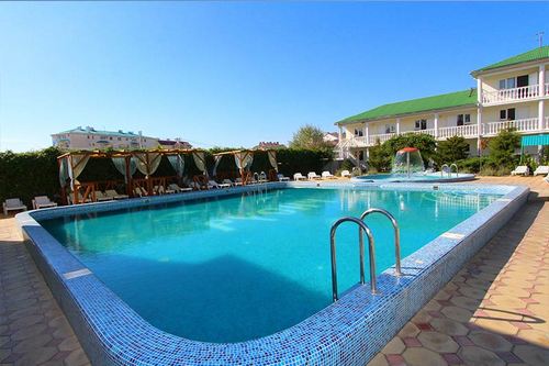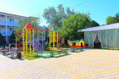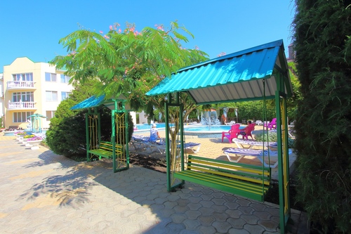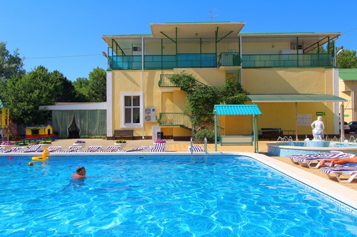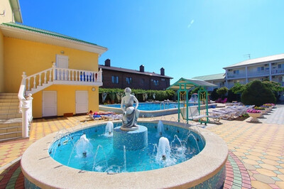 Инфраструктура: обустроенная комфортная территория гостиницы «Русич» огорожена, прекрасно озеленена. Два бассейна (детский диаметром 6 м с водопадом и взрослый - 12 х 11 м с гидромассажем) с подогревом, оснащены системой автоматической фильтрации воды. Рядом с бассейнами располагается зона отдыха с шезлонгами, тентами от солнца и летнее кафе. При входе в зону отдыха расположен красивый, действующий фонтан. Так же есть детская площадка, детская игровая комната, тренажерная площадка. Находится под круглосуточной охраной.
