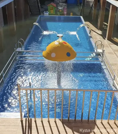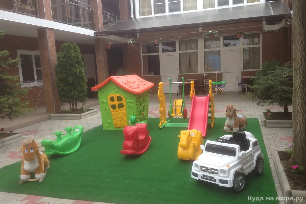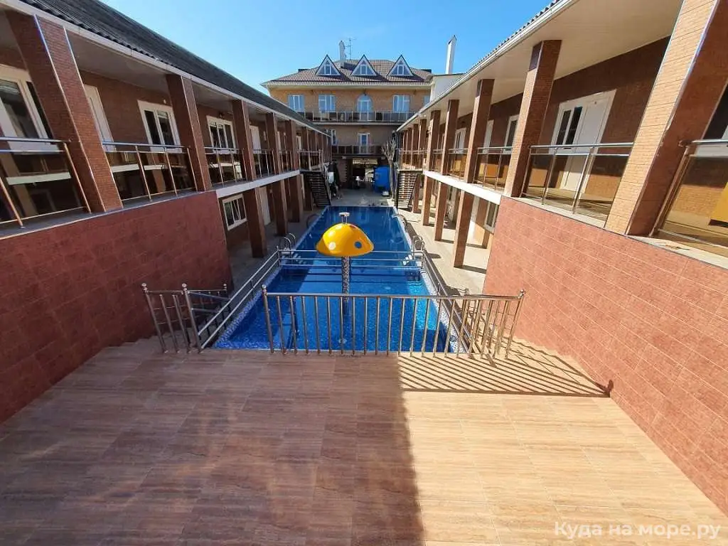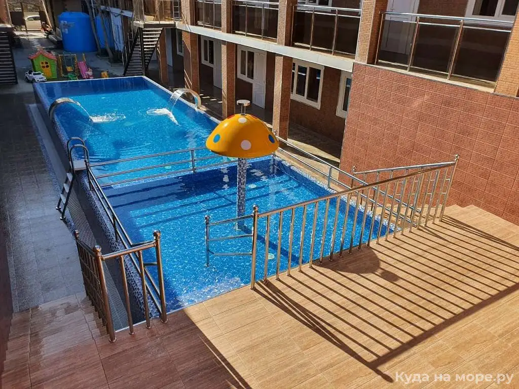 Инфраструктура: Бассейн, Wi-Fi, кухня, уютный зеленый двор с детской площадкой, качелями, навесами со столиком для отдыха и мангалом, гладильная комната.