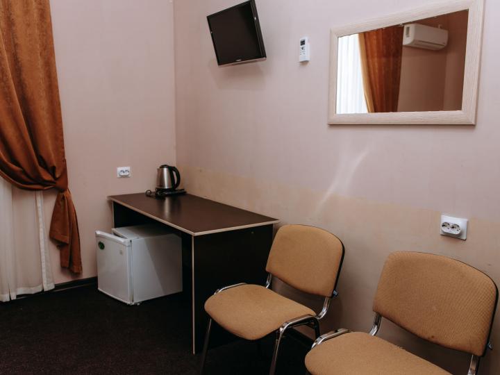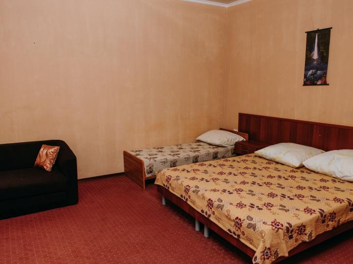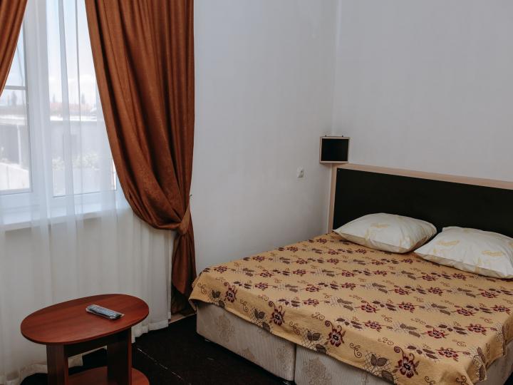 Размещение: 1, 2-х, 3-х, 4-х, местных номерах в двухэтажных корпусах общей вместимостью 200 человек. Все номера категории стандарт с удобствами, ТВ, холодильником, чайник, сплит-системой, Wi-Fi. Оформлены в светлых тонах, оснащены удобными кроватями. Набор полотенец.