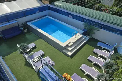 Инфраструктура: Wi-Fi, бассейн с подогревом (3,5*6), открытая детская площадка и закрытая большая детская игровая комната, своя столовая, бильярд (платно), тренажерный зал (платно), стол для пинг-понга, кулеры на всех этажах.