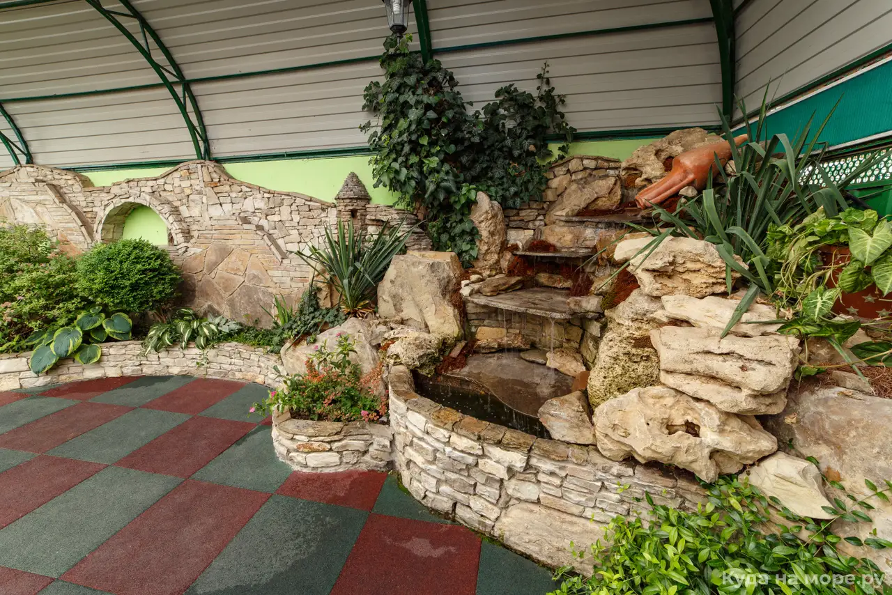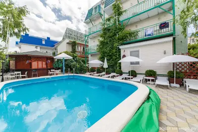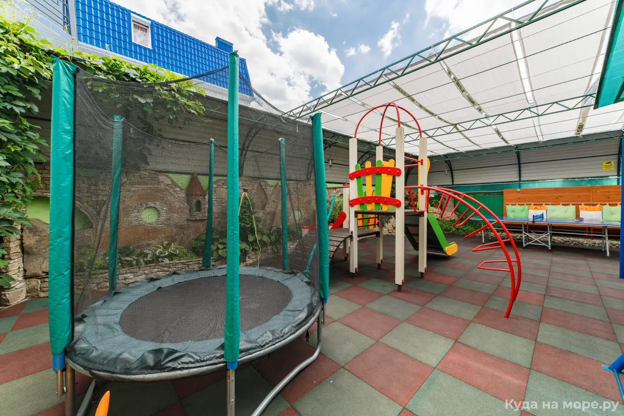 Инфраструктура: Wi-Fi, бассейн с подогревом и лежаками, детская площадка, батут, стол для пинг-понга, беседка, своя столовая, кулеры на всех этажах, гладильная доска с утюгом на 2-ом этаже, стирка (платно).