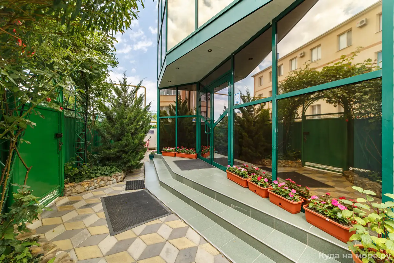 Размещение: Современное 4-х этажное здание с уютной зеленой территорией и бассейном.