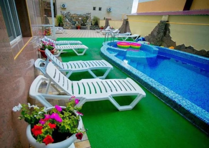 Инфраструктура: Wi-Fi, бассейн с шезлонгами для загара, столики для отдыха, гладильная доска, утюг. На территории гостиницы находится кафе. Возможно за дополнительную плату заказать 3-разовое питание.