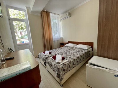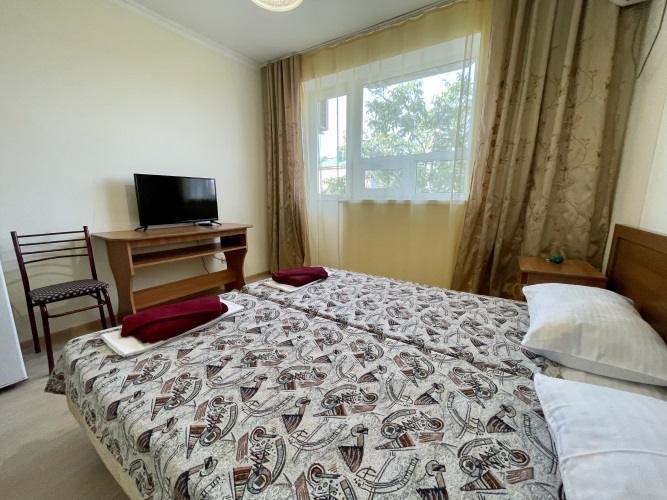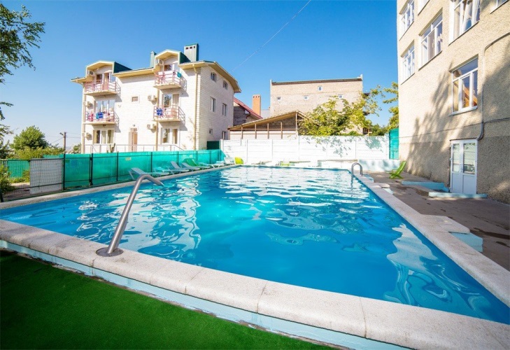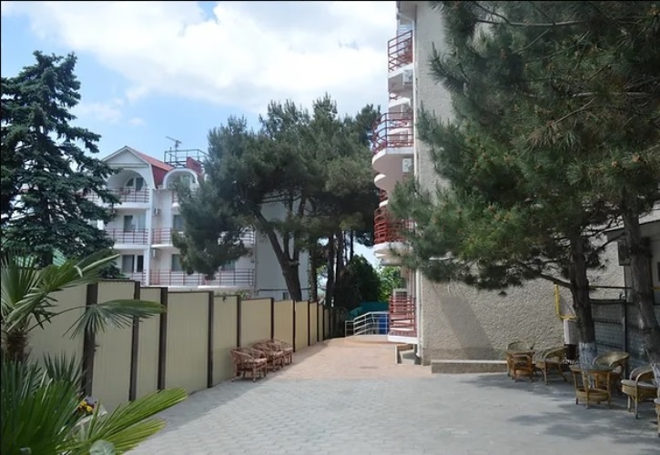 Отель представляет собой 4-этажный корпус, построенный в 2010 году. Светлое здание окружено сочной зеленью, ухоженными газонами, плиточными тротуарами. Территория отеля закрыта для посторонних, бассейн под открытым небом, на каждом этаже кулер с питьевой водой. Популярностью у гостей пользуется площадка для пляжного футбола и волейбола. Дети на территории пансионата смогут занять себя увлекательными играми на детской площадке. Предусмотрена охраняемая парковка. Предоставляется доступ к Wi-fi.
