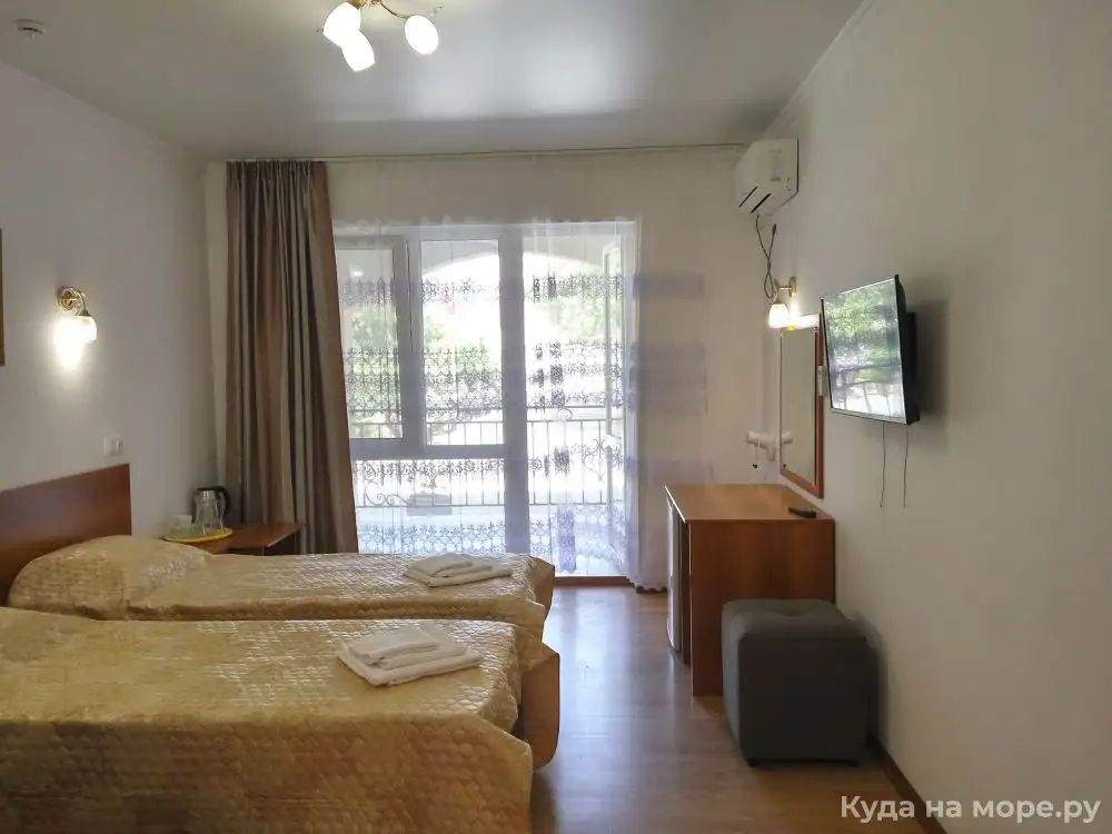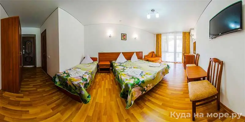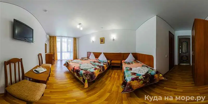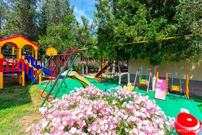 Инфраструктура: пансионат расположен на охраняемой благоустроенной территории с большим массивом зеленых насаждений, розариями, хвойными деревьями, специально отведенными и оборудованными местами для отдыха и прогулок, наличие лавочек, крытых беседок, питьевых фонтанов; бассейн, оборудованный обогревателем воды; тренажёрный зал, библиотека; волейбольная и баскетбольная площадки; настольный теннис; камера хранения; детская комната; киоски с напитками и мороженым; экскурсионное бюро; печь барбекю; аниматор для детей.Собственный песчанный пляж: крытые теневые навесы, раздевалки, биотуалет, лежаки. На пляже работает круглосуточный спасательный пост. Территория пляжа охраняется, посторонние отдыхающие на пляж не допускаются.