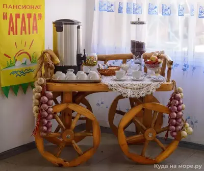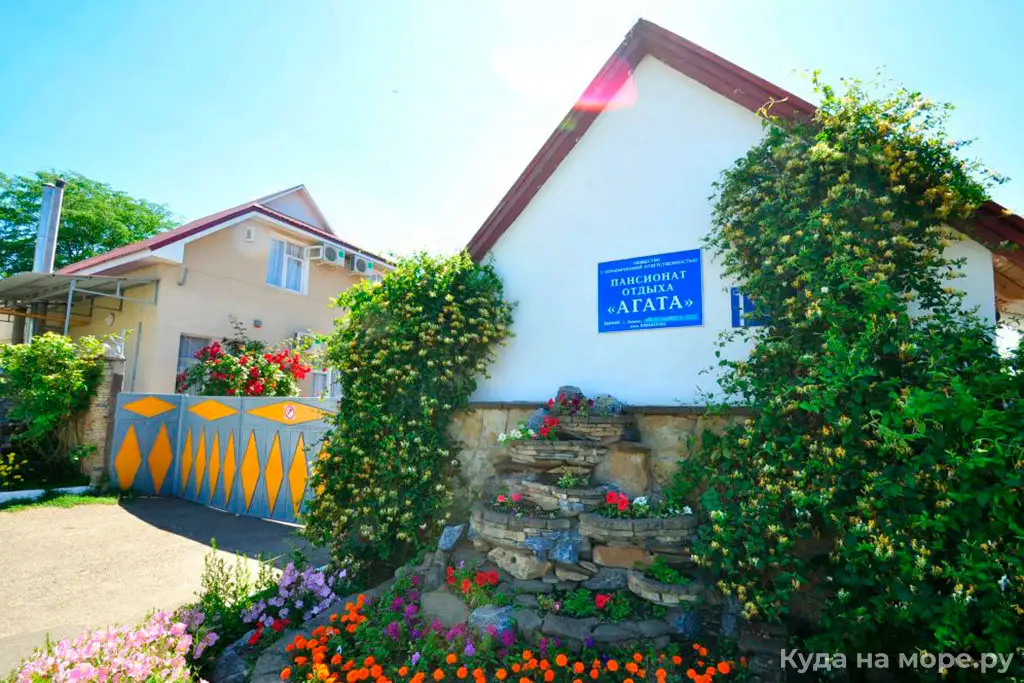 Пансионат "Агата" находится в 6 км от аэропорта г. Анапа, в 5 км от ж/д вокзала Анапа, в 11 км от центра Анапы и в 100 метрах от бульвара Паралия поселка Витязево, где доступен широкий спектр развлечений, боулинг центр, аквапарк, магазины, аптеки, банкоматы, продуктовый рынок и остановки маршрутных такси. При желании можно посетить множество достопримечательностей курорта, побывав на экскурсии. На небольшой территории 0,5 га. расположились двухэтажные коттеджи и новый 2-х этажный корпус с номерами различных категорий. Пансионат отдыха находится в тихом и спокойном месте, в 300 м. от уникального тематического аквапарка «Олимпия» и детским парком с качелями и каруселями поселка-курорта Витязево. Пансионат располагает своим собственным оборудованным песчаным (кварцевым) пляжем в 10-15 мин. ходьбы от пансионата (900 м).