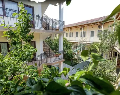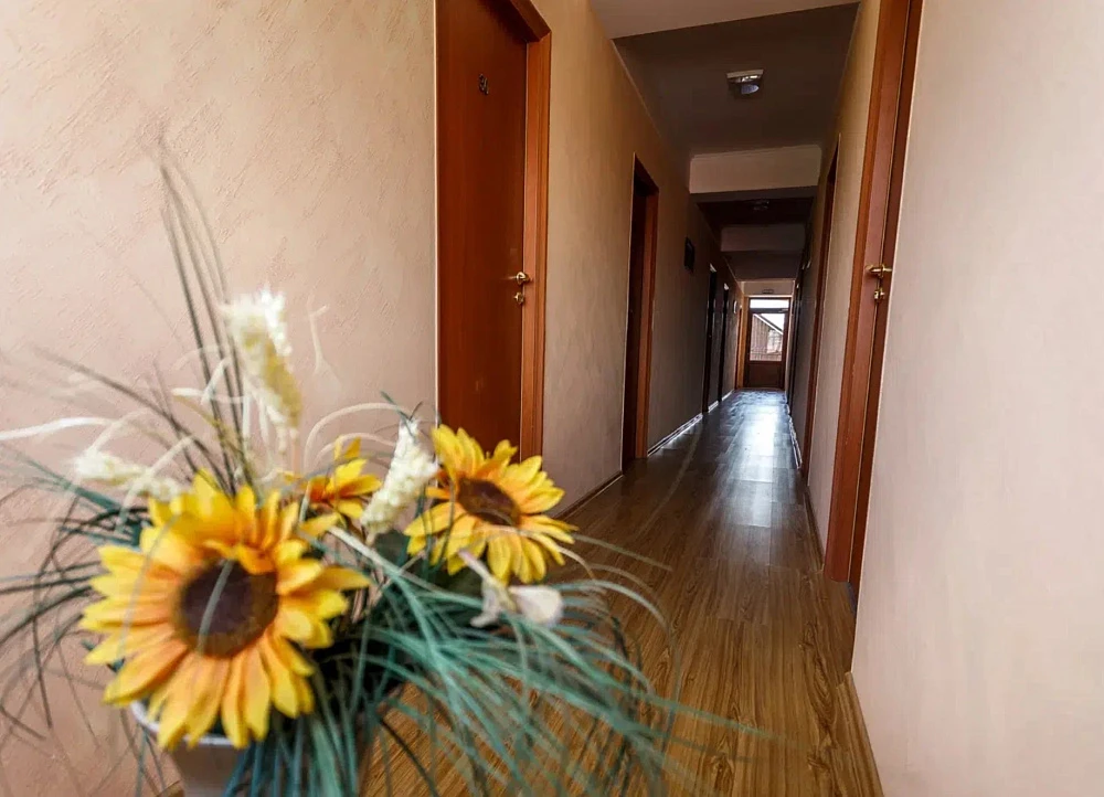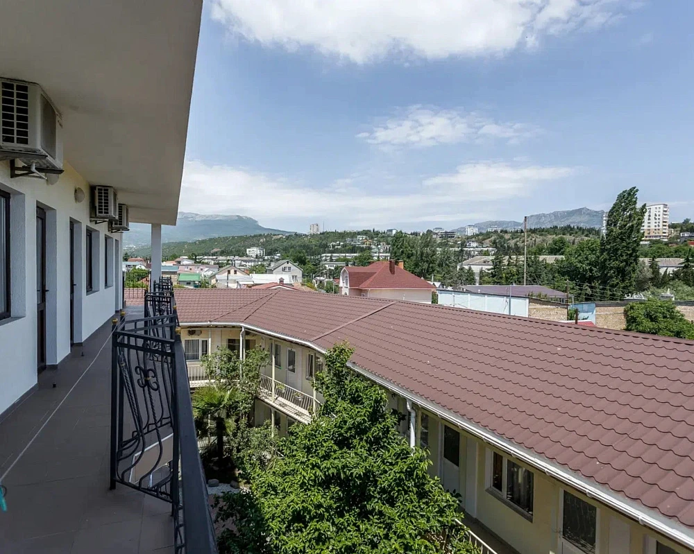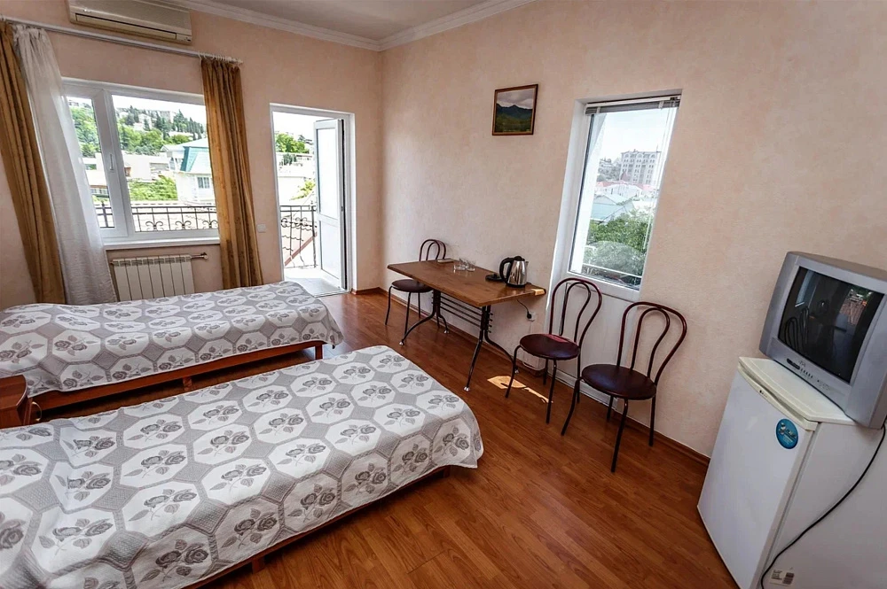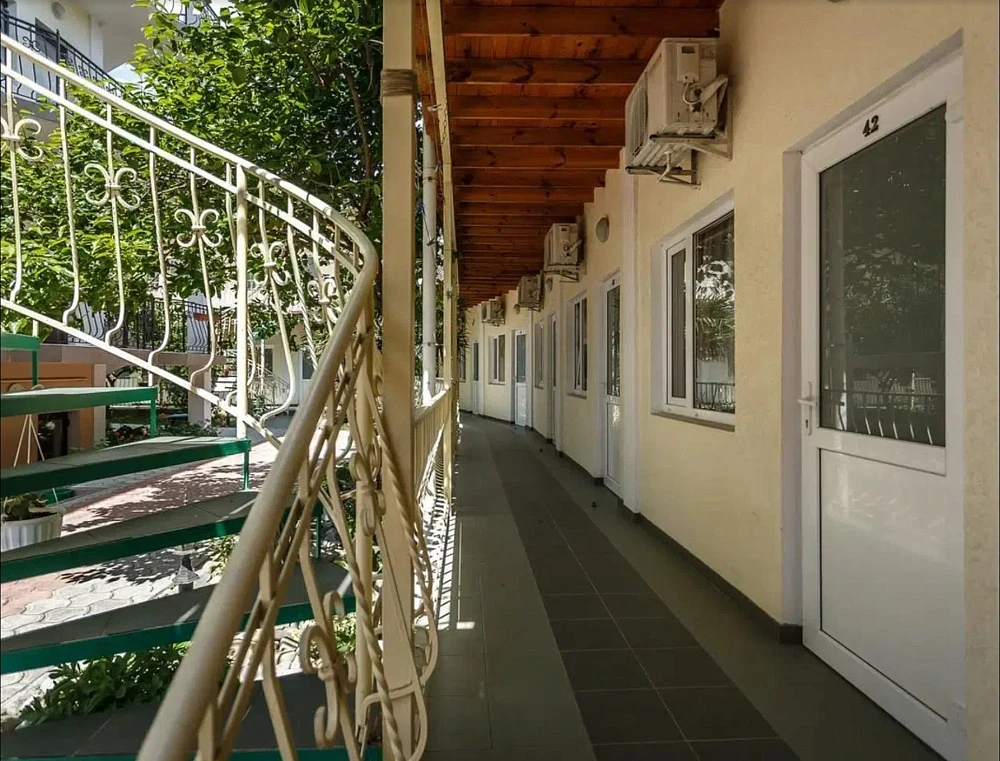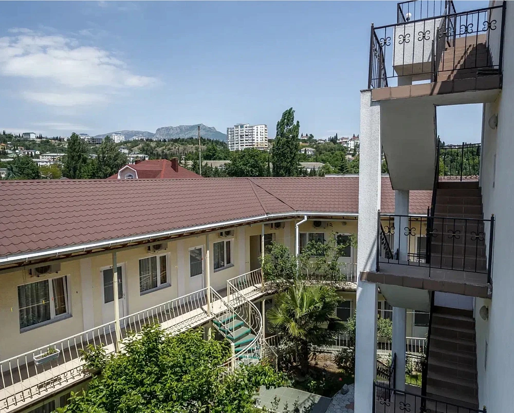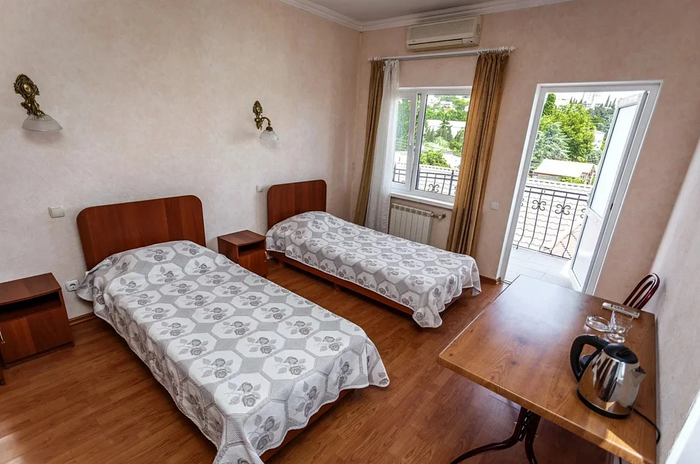 К услугам гостей три трехэтажных корпуса с номерами разных категорий, каждый из которых оборудован собственной ванной комнатой, современной мебелью и техникой. Интерьер выполнен в светлых пастельных оттенках. В номерах есть телевизор, шкаф, холодильник, кондиционер. Из некоторых комнат открывается вид на горы и город, также есть возможность полюбоваться панорамой с крыши. Буйная зелень наполняет двор, деревья насыщают его смолистым ароматом и радуют глаз.