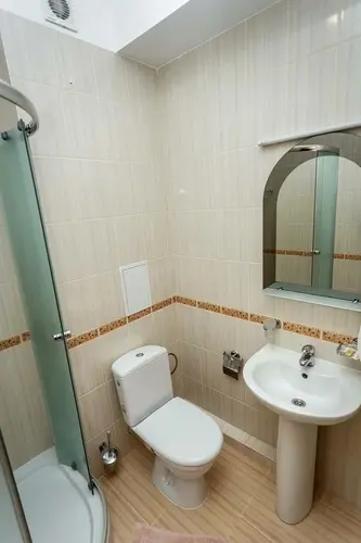 В каждом номере: одна двуспальная или две односпальные кровати, необходимый набор мебели, душ, туалет, умывальник, телевизор со спутниковыми каналами, бесплатный Wi-Fi, кондиционер, холодильник, электрический чайник, фен (по запросу), стирка за дополнительную плату.
