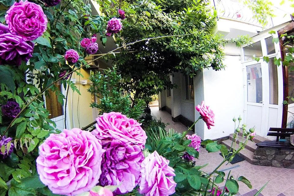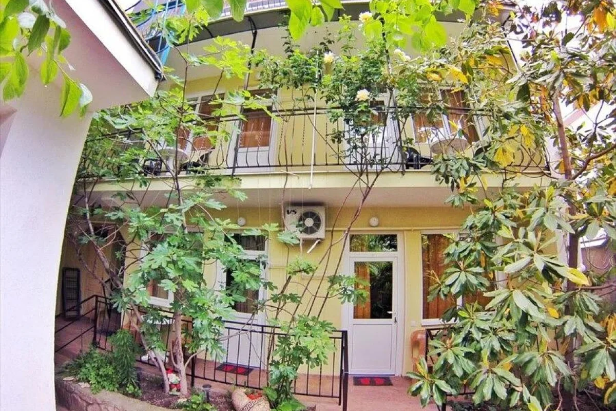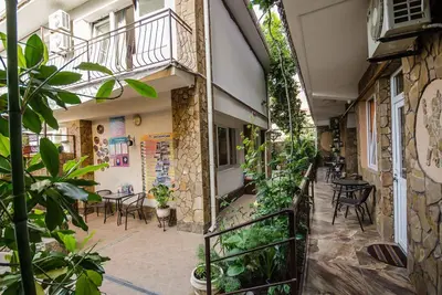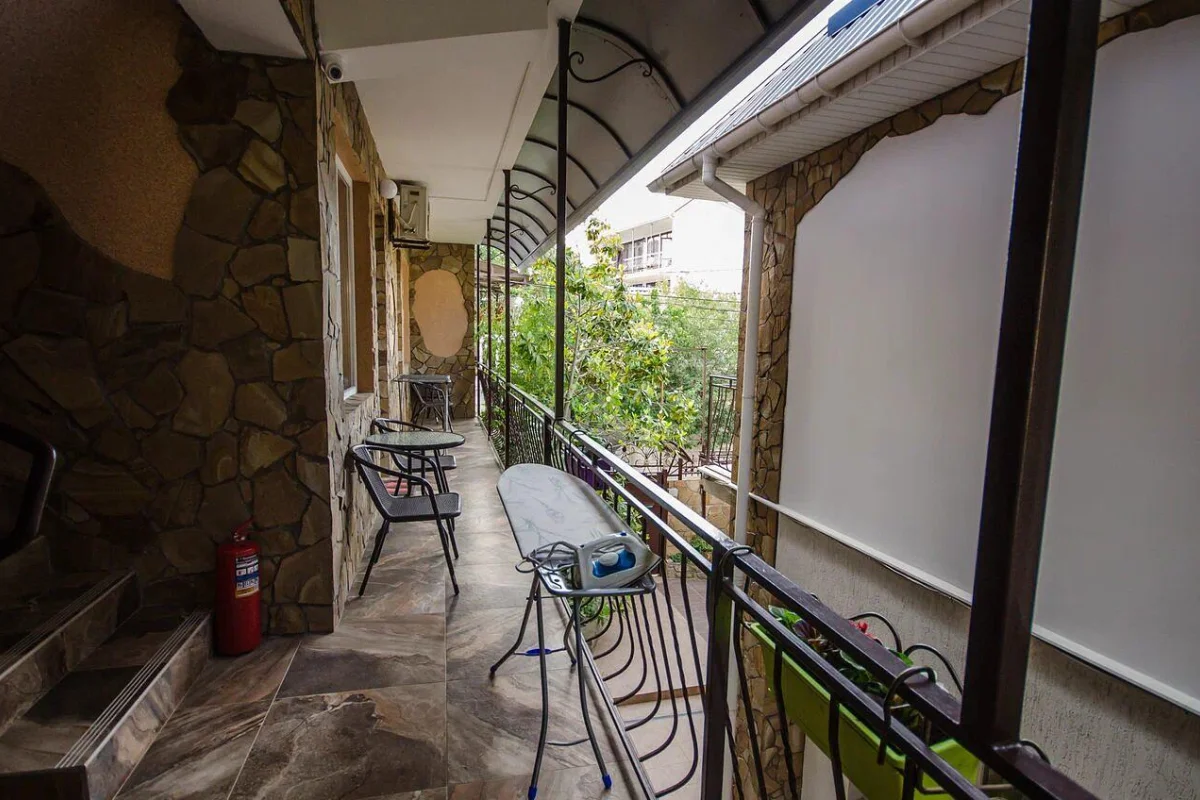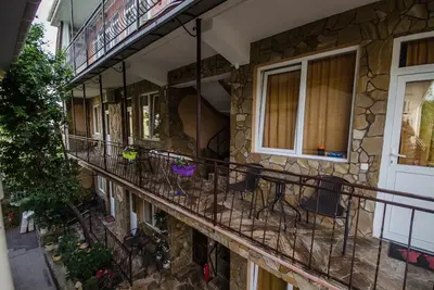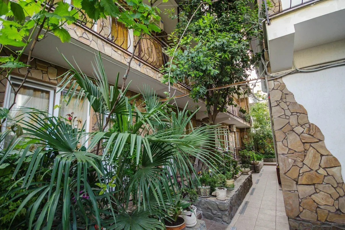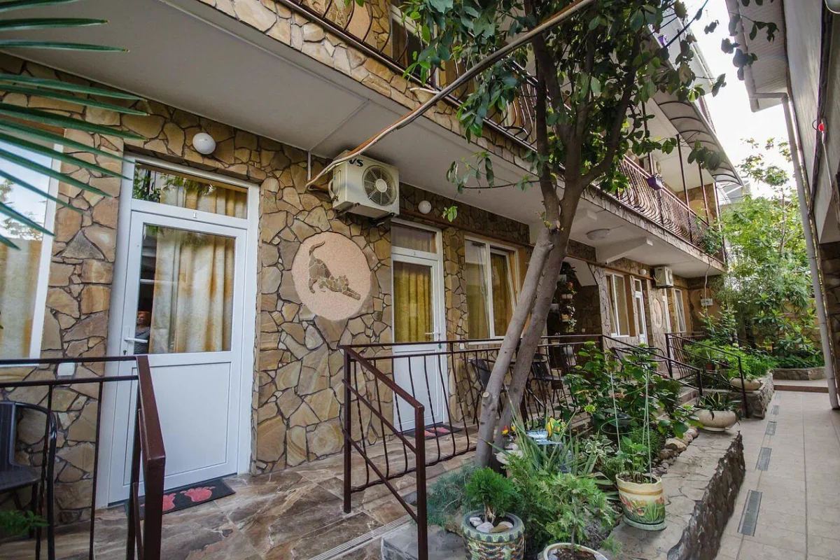 Трехэтажный корпус без лифта разместился в небольшом зеленом дворике. Способный единовременно принять до 30 человек, гостевой дом предлагает отдыхающим двухместные номера Стандарт и Улучшенный. Номера хорошо меблированы, есть балконы, необходимая бытовая техника и собственный санузел с ванной или душем.