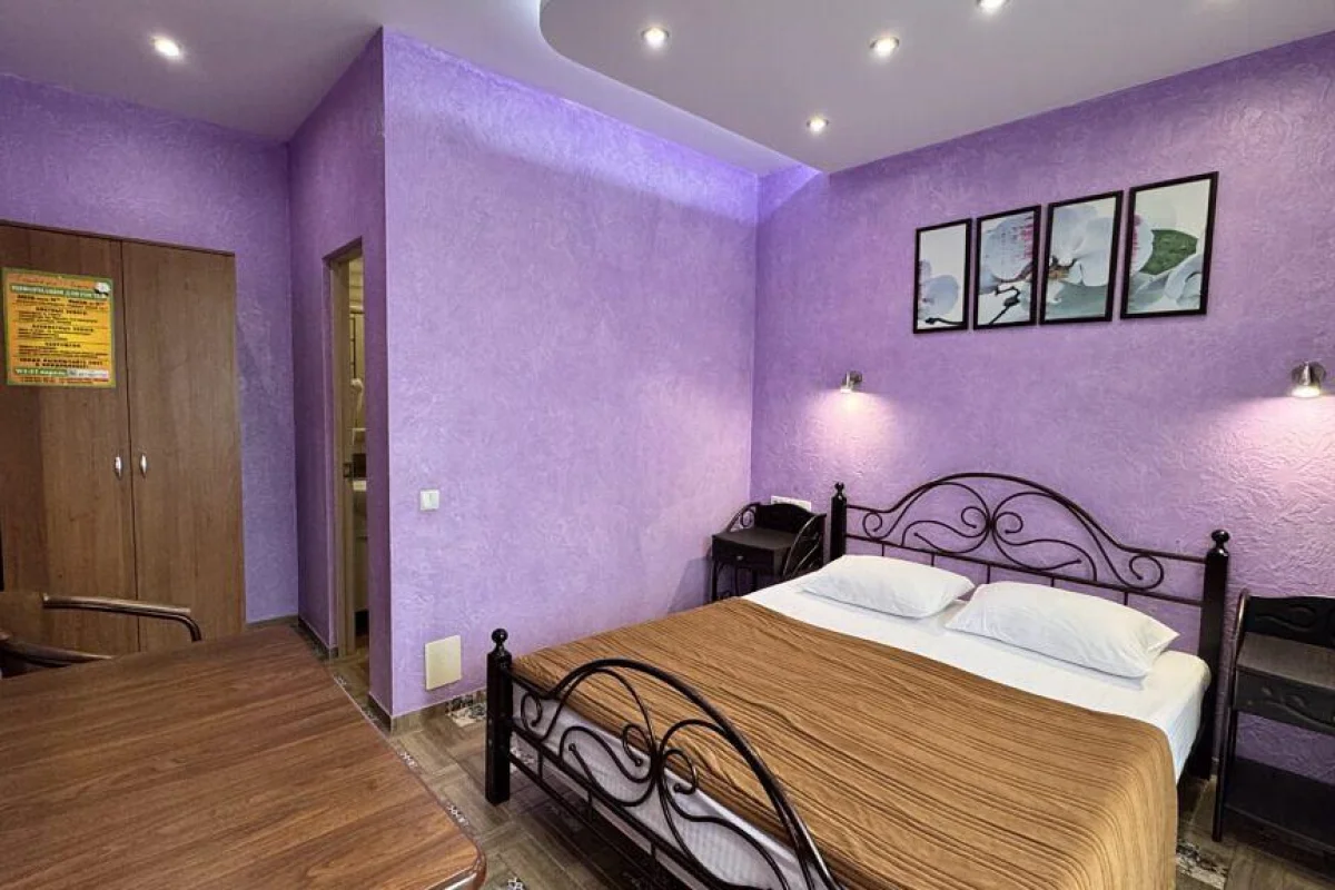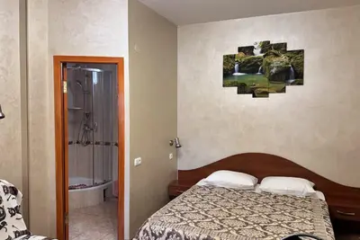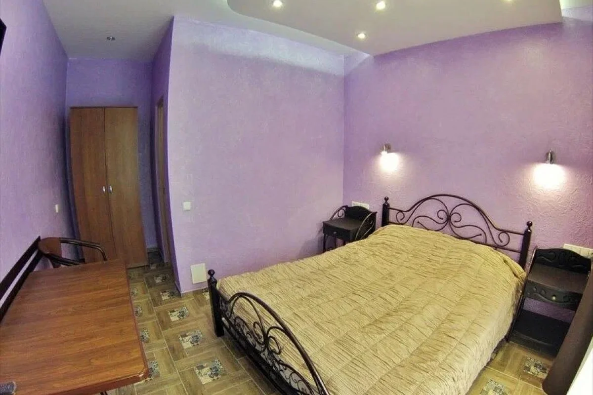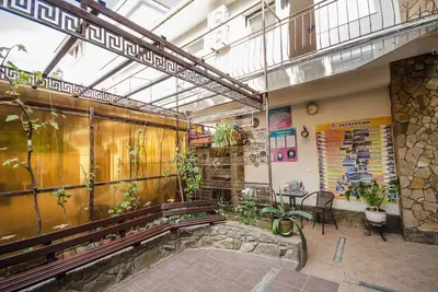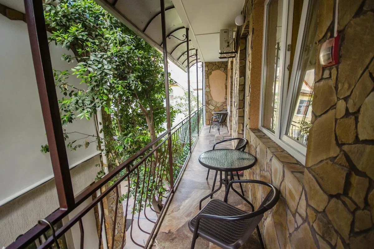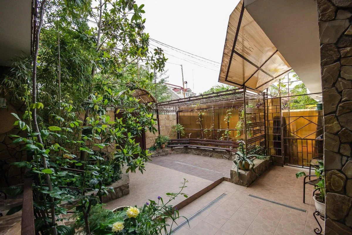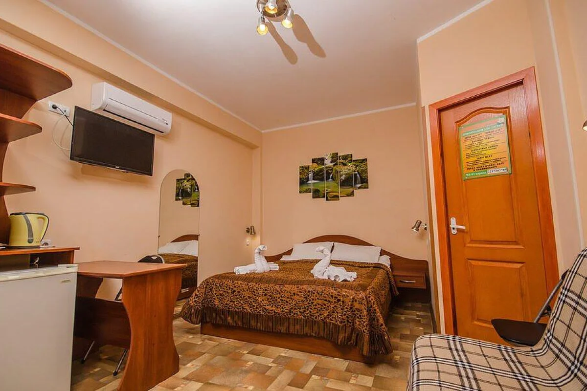 Трехэтажный корпус без лифта разместился в небольшом зеленом дворике. Способный единовременно принять до 30 человек, гостевой дом предлагает отдыхающим двухместные номера Стандарт и Улучшенный. Номера хорошо меблированы, есть балконы, необходимая бытовая техника и собственный санузел с ванной или душем.