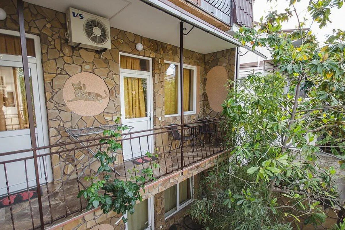 Гостевой дом «Рыжий кот» находится в зеленой зоне среди малоэтажной застройки Алушты в 450 метрах от центра курортного города. Рядом — супермаркеты, магазины, развязка на Ялтинское шоссе, за 10—15 минут можно дойти до алуштинского дельфинария и парка миниатюр.