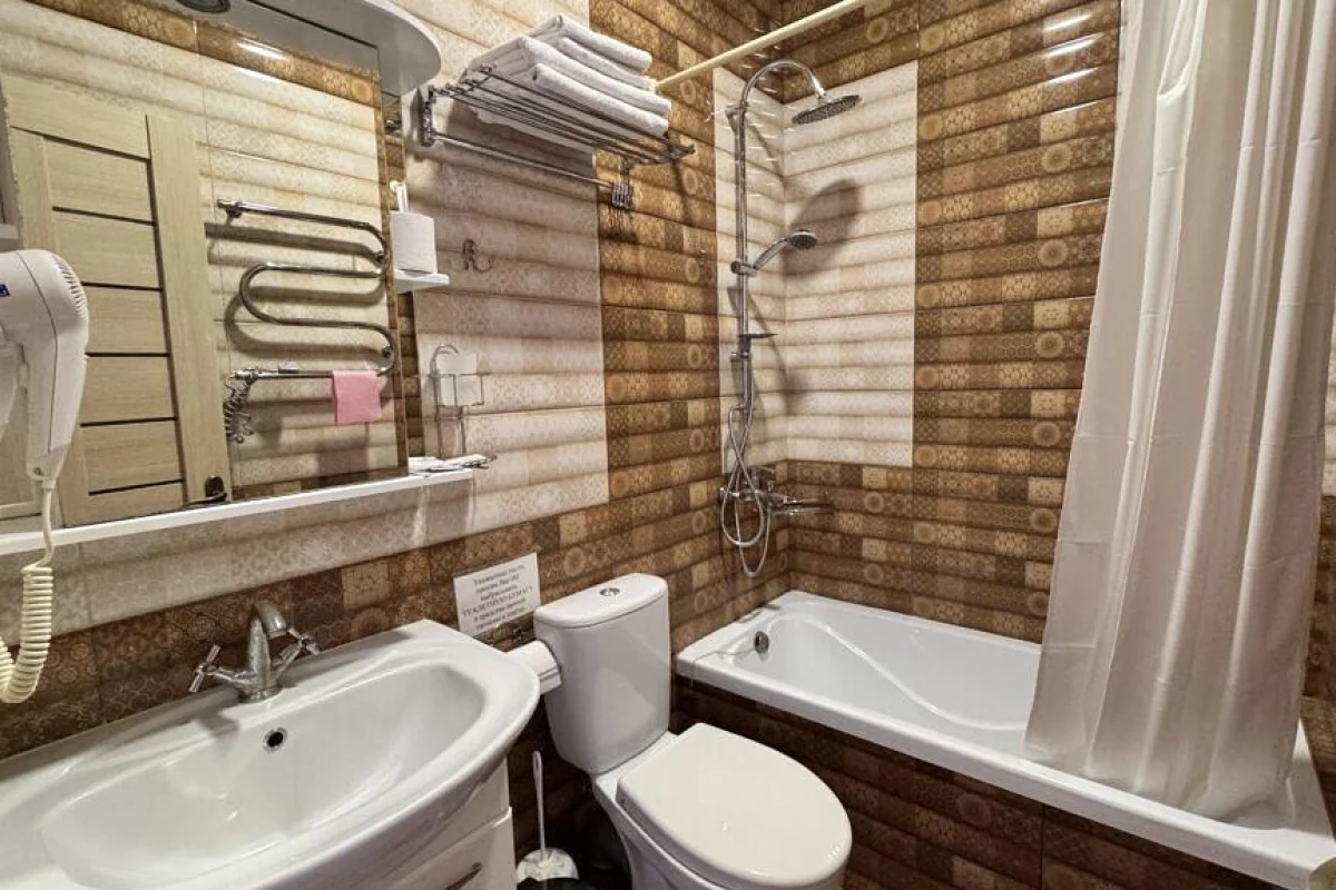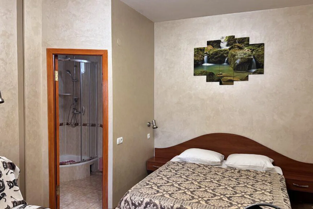 2- местные номера с удобствами с удобствами+ доп место (13 м2, 1 комната, душ и туалет в номере, Холодильник, Телевизор, Балкон, Кондиционер, двухспальная кровать и раскладной диван, сейф )