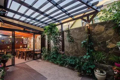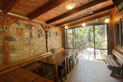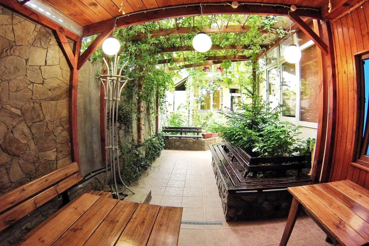 В гостевом доме предусмотрена общая кухня, где отдыхающие могут самостоятельно приготовить себе еду, во дворике обустроена уютная беседка, на всей территории ловит сеть wi-fi.