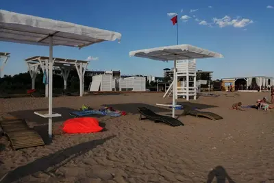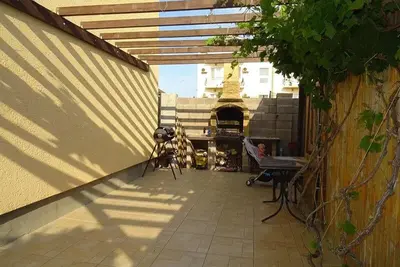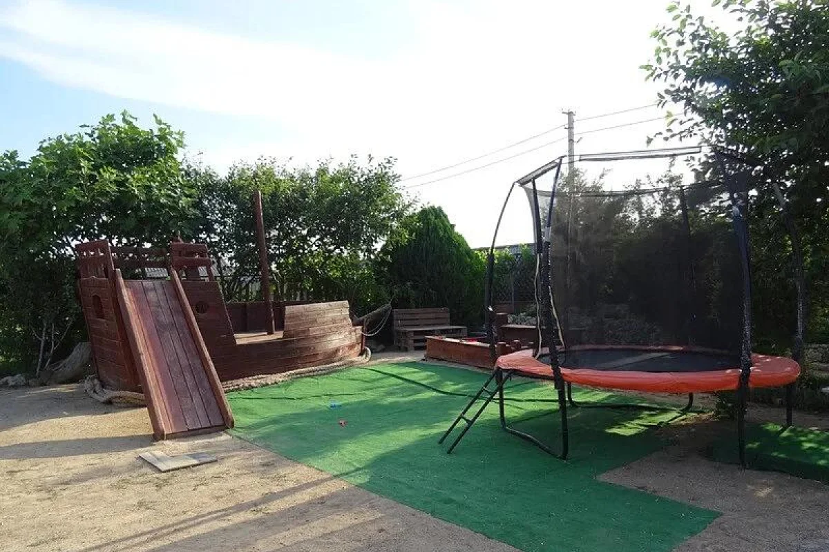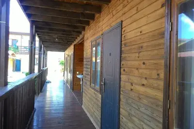 Гостевой дом «Жемчужина» расположен в самом сердце Заозерного, «Жемчужина» — место с ухоженной территорией и всем необходимым для проживания. Есть детская площадка с качелями, батутом и песочницей, спортивные зоны, теннис, шезлонги. На территории — общая кухня с бытовой техникой и посудой, мангал, Wi-Fi. До пляжа можно дойти пешком за 10 минут. Раз в неделю для детей приглашают аниматоров.