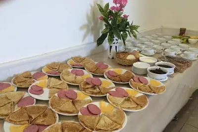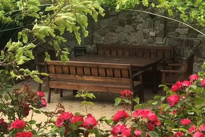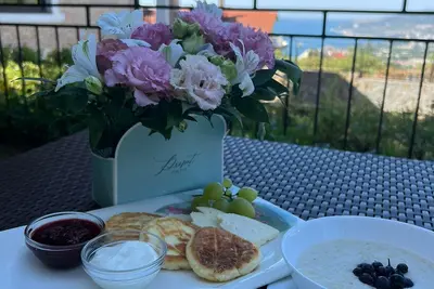 Услуга трансфера к морю(бесплатно). Отель помогает своим гостям быстро и с комфортом добираться до берега, расположенного в 2 км. Транспорт гостевого дома довезет Вас до места за какие-то 2 минуты.