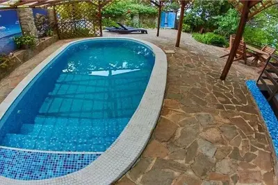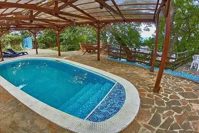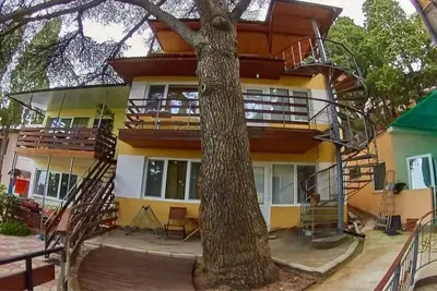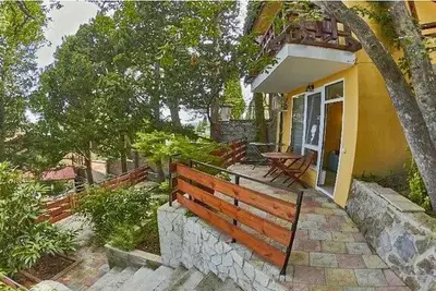 Гостевой дом «Кипарисовый рай» расположен в самом центре Алупки на высоте 30 метров над уровнем моря, расстояние до пляжа составляет всего 550 метров, которые можно преодолеть пешком вниз за 5-10 минут. Все номера гостевого дома имеют отдельный вход со двора,На территории гостевого дома расположен большой открытый пресный бассейн с навесом, бесплатная автостоянка, турник, теннисный стол. Есть общая кухня, оборудованная всем для самостоятельной готовки и мангал. На территории расположены уютные беседки для отдыха по вечерам.