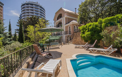 Вилла «Багратион» расположена в одном из самых популярных курортных городов Крыма — в Ялте. В шаговой доступности — знаменитая ялтинская набережная, утопающий в зелени Приморский парк, аквапарк «Атлантида», бары, кафе, магазины. Пятиэтажное здание виллы разместилось на благоустроенной территории с небольшим внутренним двориком. В распоряжении отдыхающих мангальная зона и открытый БАССЕЙН с пресной водой, вокруг которого расставлены шезлонги для принятия солнечных ванн. В 400 метрах находится городской пляж. Вдоль побережья работают бары и кафе, есть шезлонги, зонтик, навесы, предусмотрены водные развлечения.