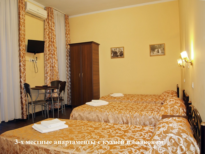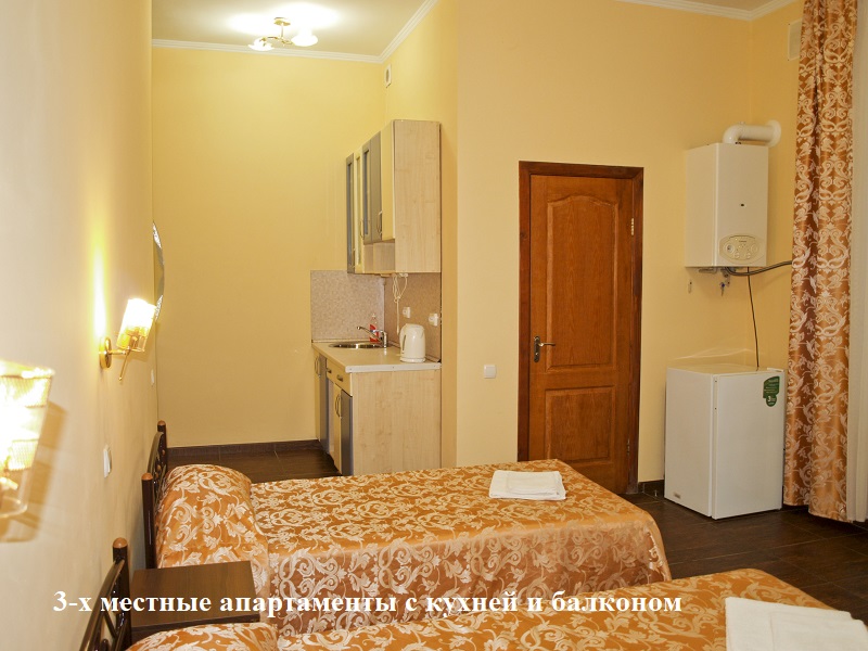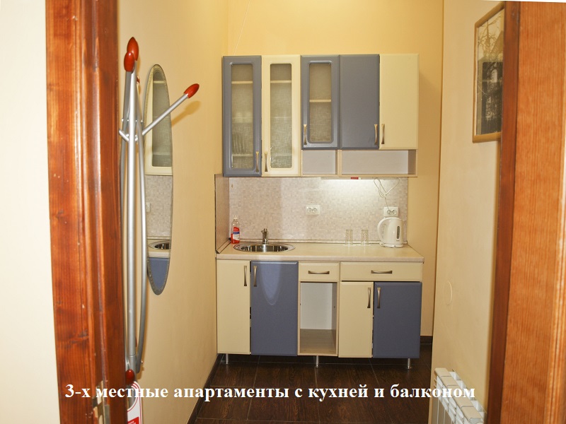 3-х местные апартаменты с кухней и балконом (элекрическая плита для приготовления, (три раздельные кровати), апартаменты 3-х-4-х местные полулюкс двухуровневые с кухней (электрическая плита для приготовления).