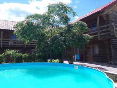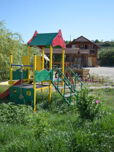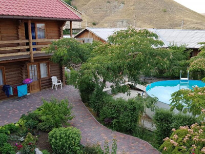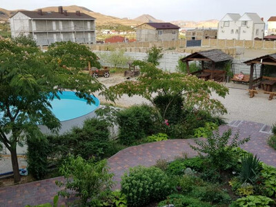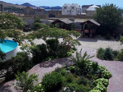 Территория гостевого дома огорожена. Во дворе бассейн, мангал, детская площадка, автостоянка.