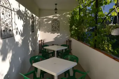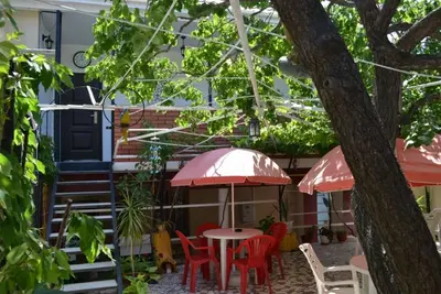 Гостевой дом "Коралловый" в Судаке расположен в 10 мин ходьбы от пляжа, в 400 метрах до Кипарисовой аллеи по прямой. И дальше через аллею к морю. Центральный пляж - мелкая галька. Левее центра- песок, ближе к Генуэзской крепости крупная галька. В непосредственной близости расположены: центр города, аквапарк, рынок, остановка, магазин продукты. Внимание: в номерах запрещено курить, не принимаются домашние животные. К услугам отдыхающих: уютный зеленый дворик с беседкой, имеется кухня для самостоятельного приготовления пищи, гладильные принадлежности. На территории и в номерах бесплатный доступ в интернет (Wi-Fi).
