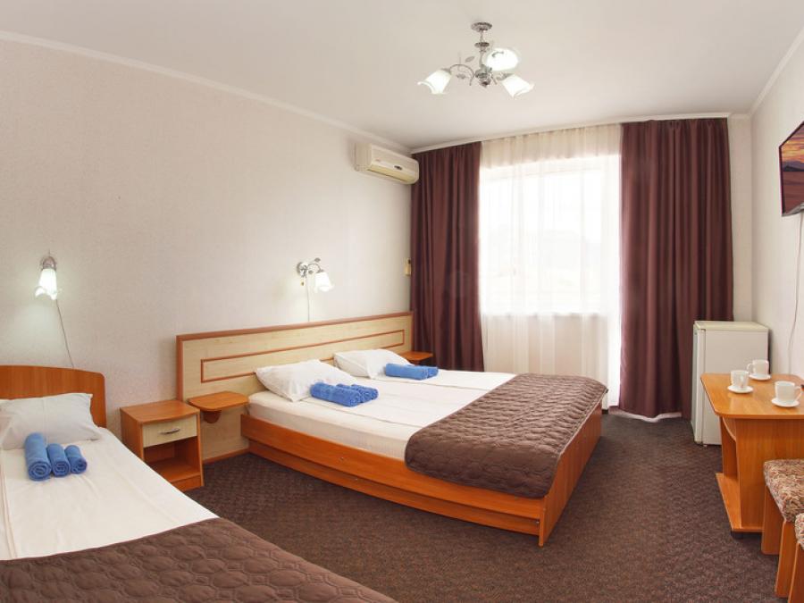 Размещение в 2-х, 3-х местных стандарт номерах с удобствами, ТВ, холодильником, кондиционером, Wi-Fi, балконом.
