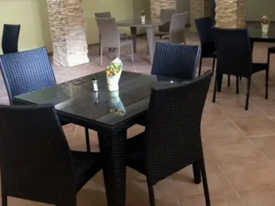 Инфраструктура: Кафе и оборудованная кухня для самостоятельного приготовлении пищи. Мангальная зона.