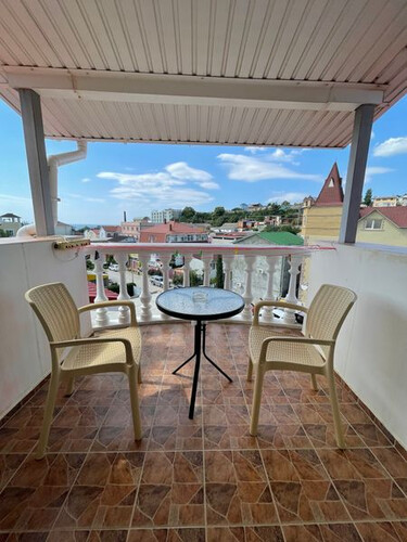 Расстояние до моря: 650 м. Пляжи Судака известны своим удобным входом в воду, благодаря тому, что дно у берега мелкое, море быстро прогревается, и купальный сезон начинается раньше и длится довольно долго. К тому же летом почти никогда не бывает штормов и сильных волн: гора защищает бухту от ветра. Особенность местных пляжей заключается еще и в особом цвете песка. Это смесь сланца и кварца — отсюда такой оттенок.