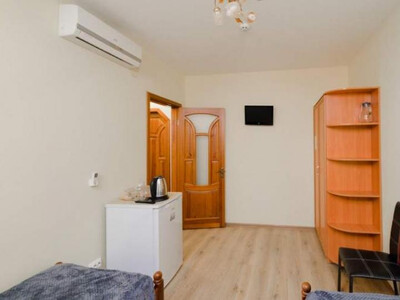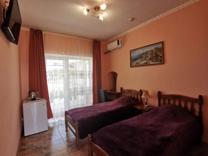 - 2-, 3-местные номера стандарт. В номерах: телевизор, кондиционер, санузел, холодильник, Wi-Fi. Двухместные номера расположены на втором этаже, трехместные на первом. При необходимости можно поставить дополнительное место – евро-раскладушку.