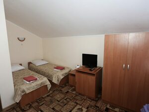 В номере: санузел+душевая кабина, холодильник, телевизор, кондиционер, две односпальные кровати, журнальный стол, шкаф, тумбочки, wi-fi.